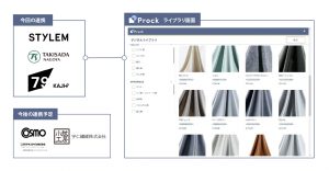 リリース時には、スタイレム瀧定大阪株式会社(代表取締役社長:瀧隆太、大阪市浪速区)、瀧定名古屋株式会社(代表取締役社長:瀧健太郎、愛知県名古屋市)、カジグループ KAJIF(代表取締役社長:梶政隆、石川県金沢市)3社の生地合計約5200種類をProck上に搭載します。